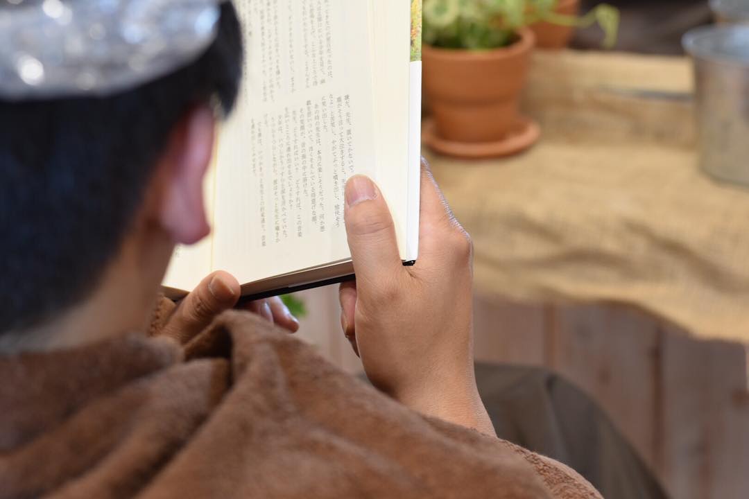 パーマをかけながらのんびり読書。komorebiではゆっくりとした時間が流れています。
