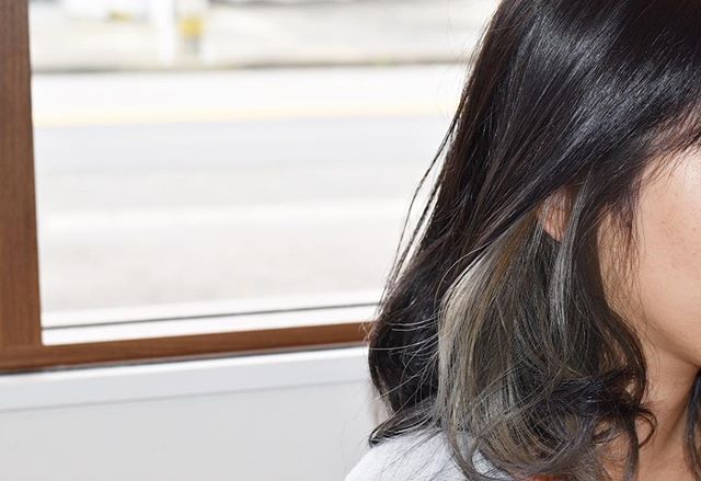 ブルーをスパイスにした黒髪ベースにオシャレなグレージュのインナーカラー🌱ヘアアレンジをするのが楽しみになるカラーです🌱🌱🌱